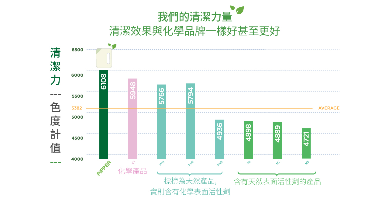 我們的清潔力量和清潔效果與化學品牌一樣好甚至更好