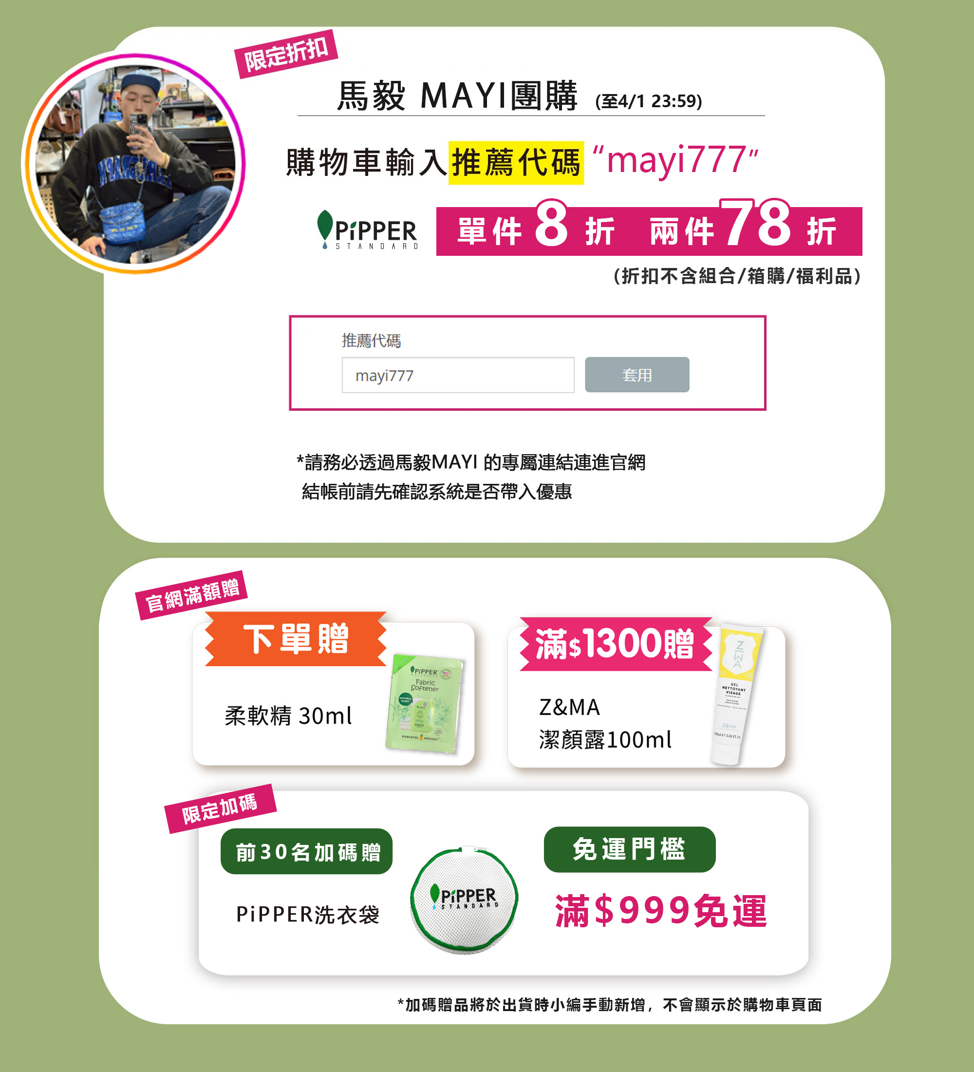 馬毅團購專屬單品8折、任2件78折 (輸入代碼 / 專屬連結進入) :